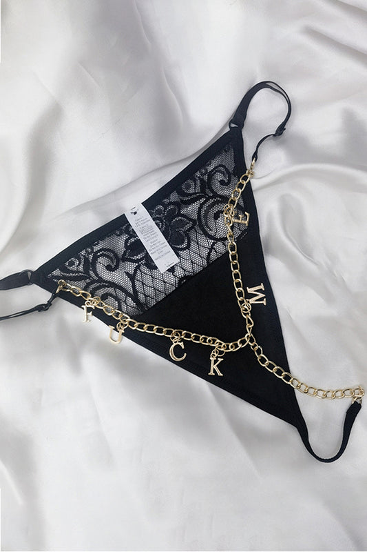 Dollcini Tanga Sexy Dantelată – Cu Lanț cu Litere Aurii