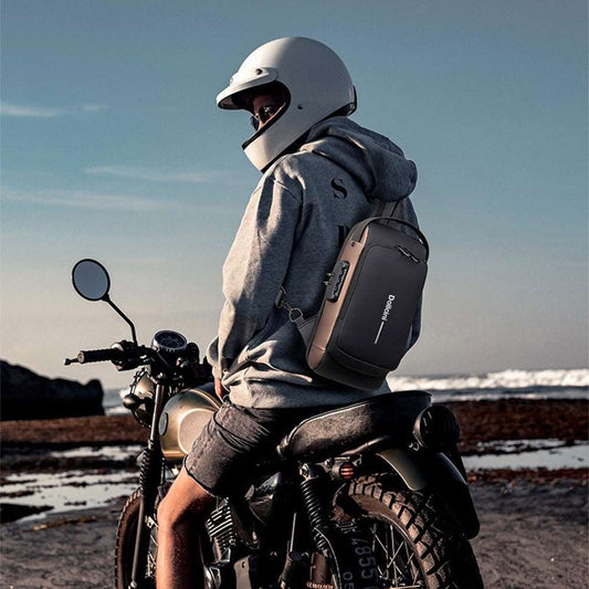 Dollcini Geantă de piept pentru bărbați cu port USB – Geantă de umăr cu închidere combinată