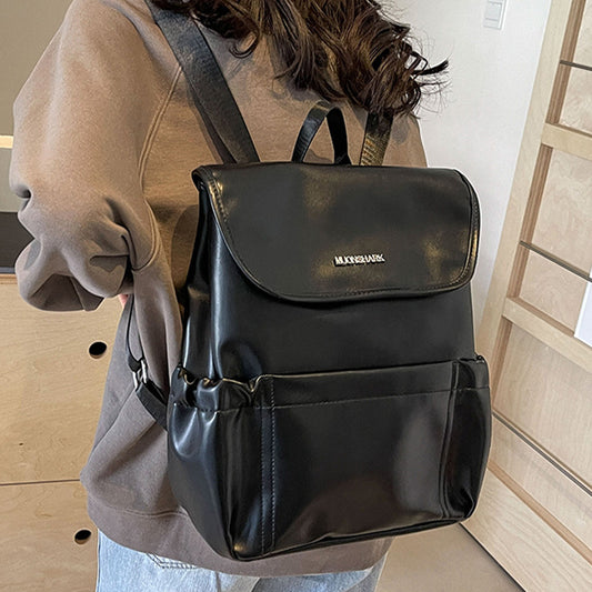 Rucsac Dollcini la modă pentru femei, capacitate mare - curea din piele PU, minimalist, pentru școală, serviciu și călătorii, negru strălucitor