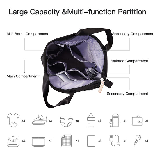 Dollcini Rucsac pentru Copii Negru – Rezistent la Apă, cu Capacitate Mare pentru Scutece