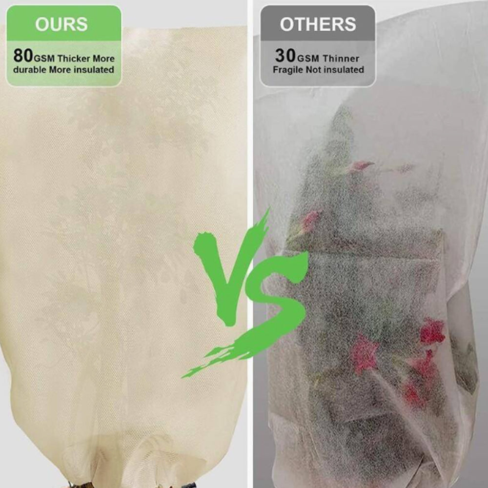 Material reutilizabil și durabil - Husele noastre pentru plante sunt reutilizabile pe tot parcursul iernii, grosimea lor oferind protecția necesară, în timp ce materialul rămâne respirabil. Această pătură anti-îngheț pentru plante de exterior asigură că plantele dumneavoastră primesc lumina soarelui și umiditatea de care au nevoie prin intermediul husei.