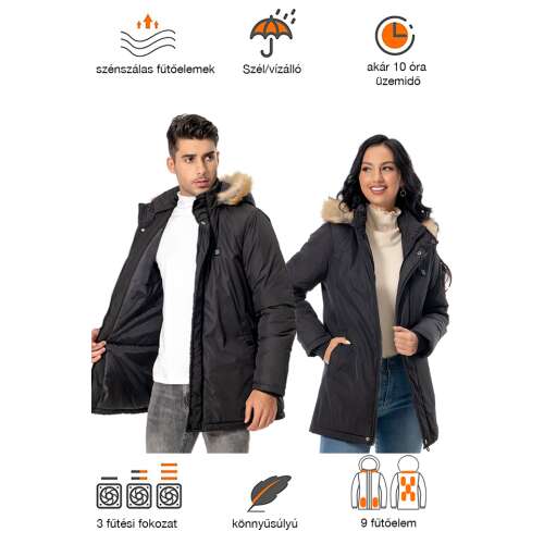 - 9 elemente de încălzire certificate din fibră de carbon, de 3 ori mai puternice decât o jachetă standard cu 4 zone încălzite