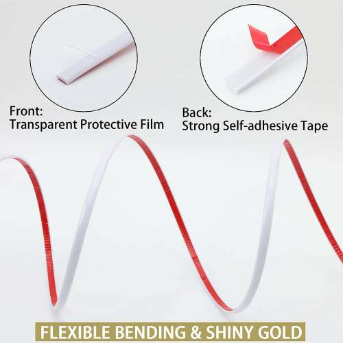 Această bandă decorativă aurie este o alegere excelentă pentru cei care doresc să adauge o notă de lux și stil unic casei sau vehiculului lor. Poate fi îndepărtată cu ușurință fără a lăsa urme, astfel încât să puteți schimba decorul oricând.