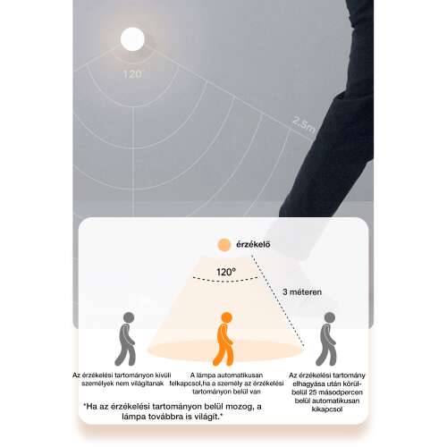 - Senzor de mișcare PIR super sensibil avansat : Se activează doar pe întuneric pentru a economisi energie. Se aprinde automat în decurs de 3 m (10 picioare, 120°) și se oprește după aproximativ 25 de secunde dacă nu se detectează nicio mișcare.