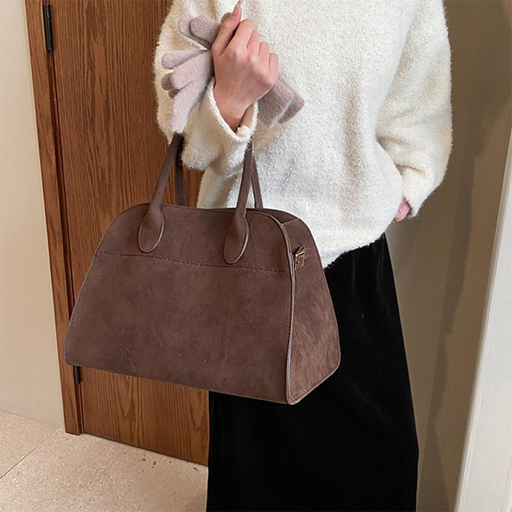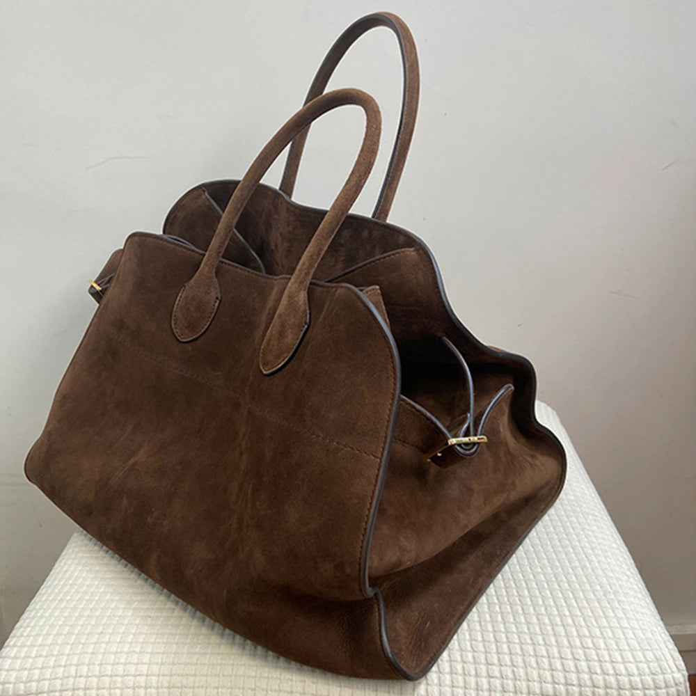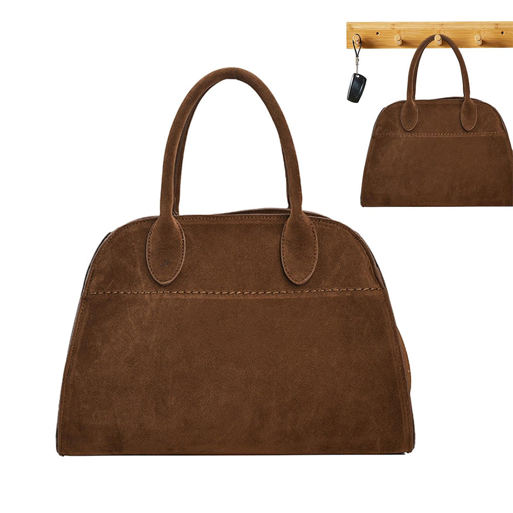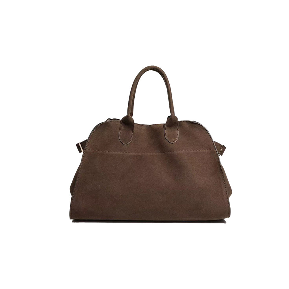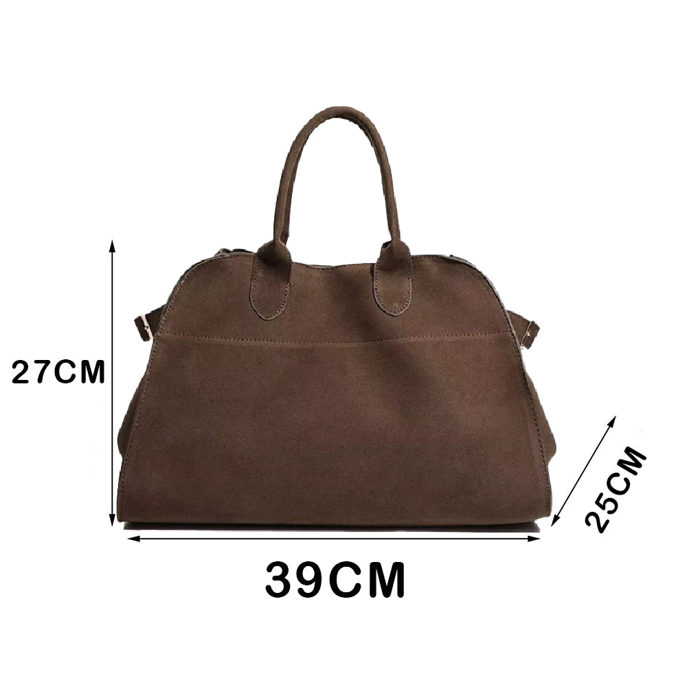 Geantă de damă Dollcini din piele întoarsă maro, capacitate mare - eleganță italiană și practicitate pentru nevoile de zi cu zi