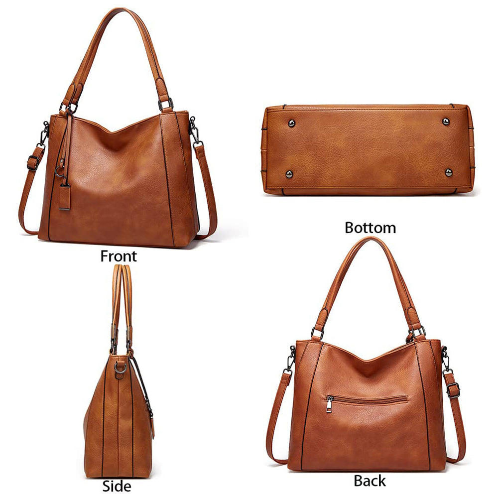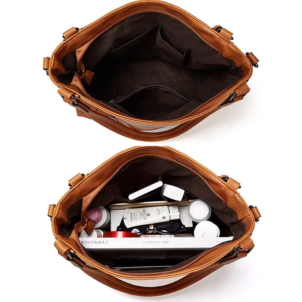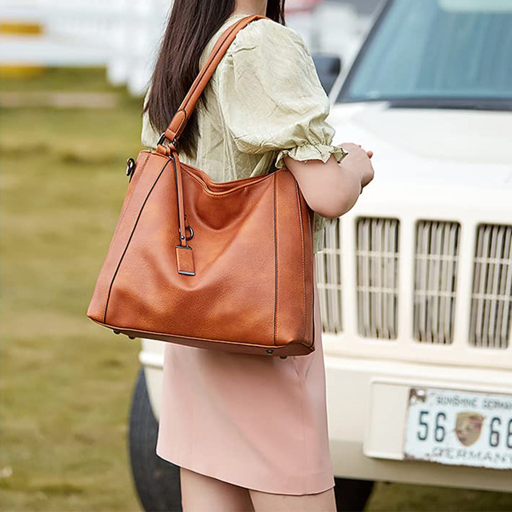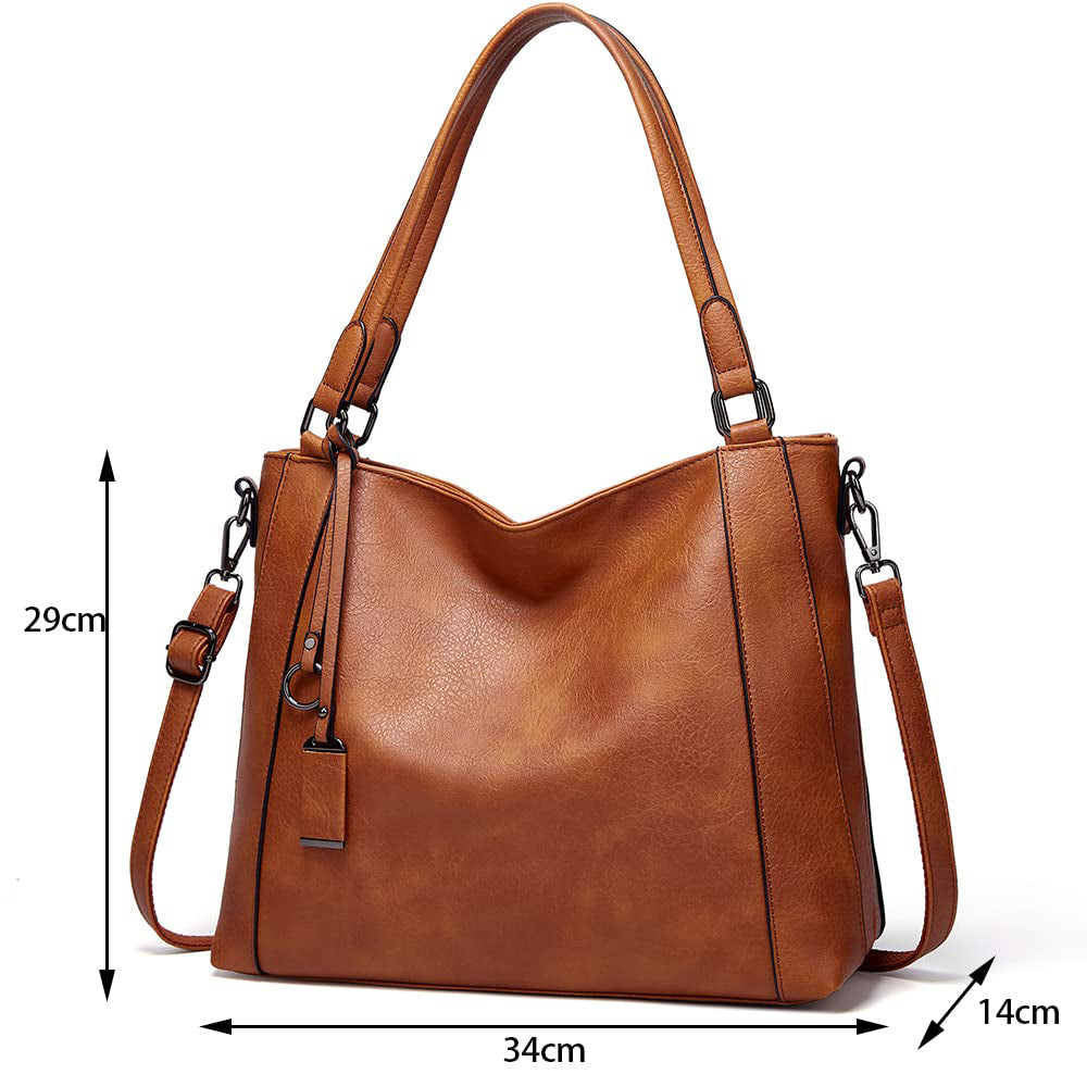 Geanta mare Dollcini din piele ecologică oferă atât eleganță, cât și funcționalitate practică. Confecționată din piele ecologică premium, cu o textură moale și material extrem de durabil, căptușeală elegantă maro și detalii argintii. Designul său spațios interior oferă loc pentru documente A4, tabletă și accesorii zilnice, în timp ce mai multe compartimente și buzunare ajută la organizare. Poate fi purtată versatil ca geantă de umăr, geantă de mână sau în stil hobo, fiind astfel o alegere ideală pentru muncă, călătorii și utilizare zilnică.