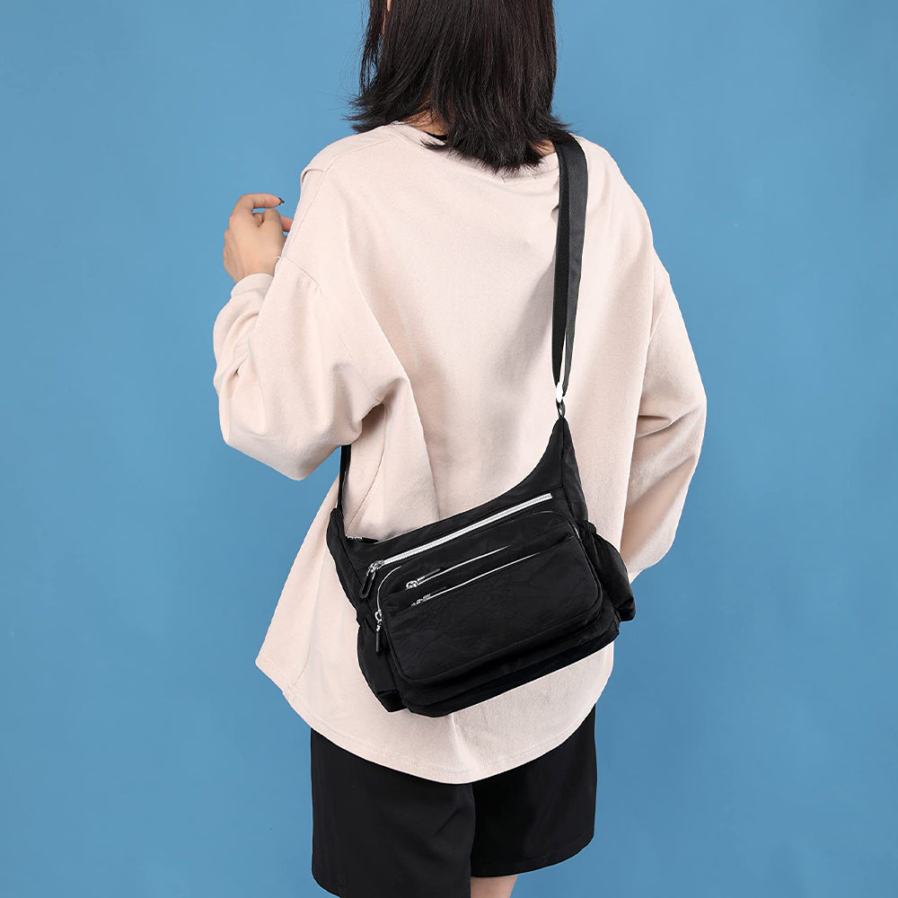 Geanta crossbody hobo pentru femei Dollcini este o alegere ușoară, rezistentă la apă și extrem de practică pentru utilizarea zilnică. Fabricată din nylon premium, durabil, rezistent la pete și ușor de curățat. Spațiul interior generos și multiplele buzunare permit organizarea laptopului, portofelului, telefonului și accesoriilor. Datorită bretelei de umăr reglabile și căptușite, oferă un confort sporit, fiind ideală pentru muncă, cumpărături, călătorii sau activități de timp liber.