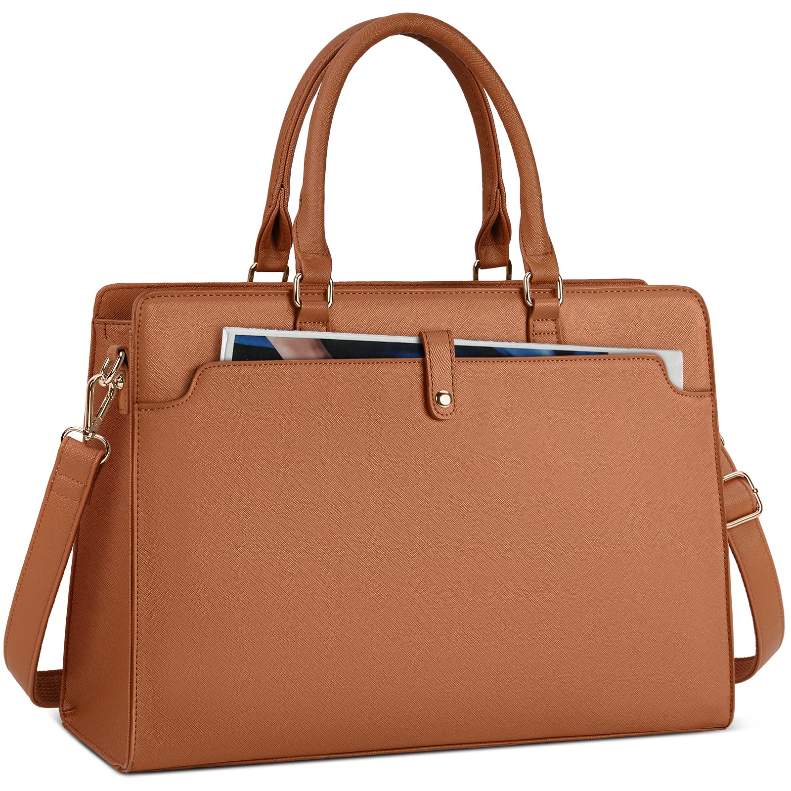 Dollcini Geantă de laptop pentru femei – Geantă de umăr din piele ecologică impermeabilă, pentru laptop de 15,6"
