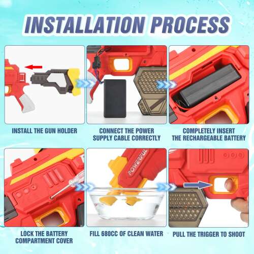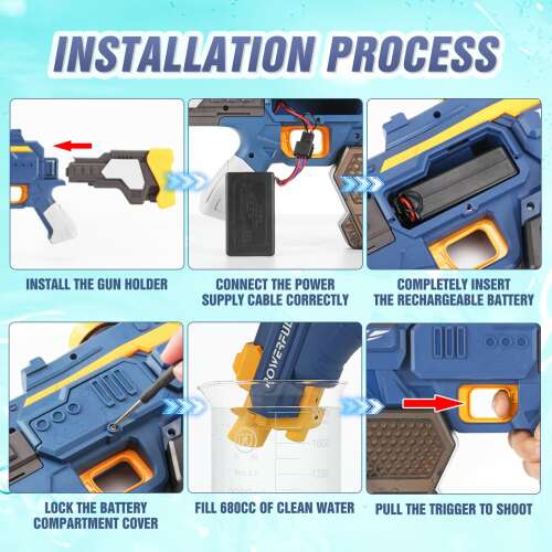 - Reîncărcare ușoară: Introduceți capătul frontal al pistolului electric de apă în apă și trageți de trăgaci înainte pentru o reîncărcare automată rapidă și ușoară