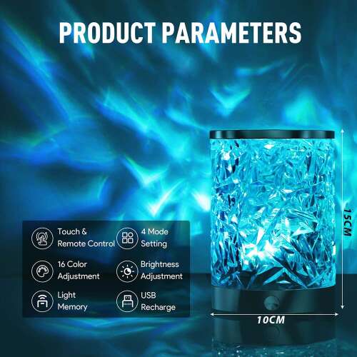 Dollcini Otthon Lampă cu Cristal RGB – 16 Culori, USB, cu Telecomandă